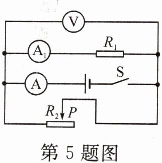 5. 如图所示的电路中, 电源电压保持不变, 闭合开关 $ S $, 当滑动变阻器的滑片 $ P $ 向右移动时, 下列说法中正确的是 (
