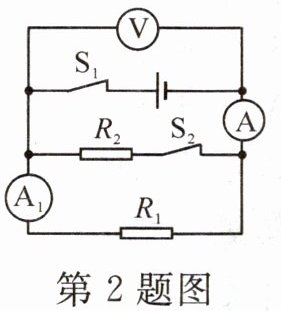2. 在如图所示的电路中, 电源电压保持不变, 开关 $ S_{1} $、$ S_{2} $ 均闭合。当开关 $ S_{2} $ 由闭合到断开时, 电路中 (