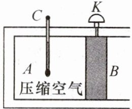 14. 新考向 科学推理 如图所示,B是一个被销钉锁住的活塞,汽缸A内密封有压缩空气,C是一支温度计,若活塞与汽缸壁之间没有摩擦,当把销钉K拔出后,将观察到活塞向右移动,温度计的示数