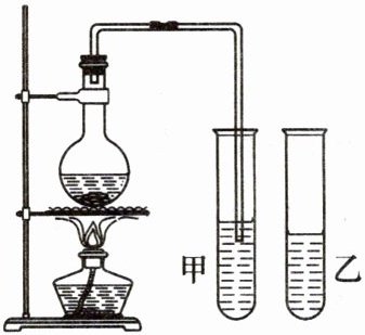 相同的水,然后将沸腾时产生的水蒸气直接通入试管甲的水中,水蒸气在甲中几乎全部液化,待甲中的水面上升一段高度后,停止通入水蒸气,测出此时甲中水的温度为 $ t_1 $,将烧瓶内开水倒入乙中直至与甲中水面相平