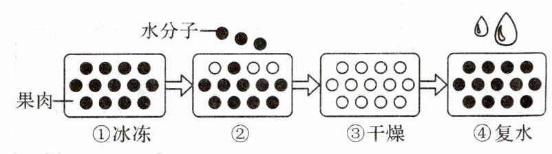 9. 北师大附属实验校本经典题 FD 冻结干燥法:在极度真空中将已冰冻的水果直接干燥,不仅能最大程度地保持水果的形态和营养,还能延长保质期并在加水后迅速复原。请判断图中②发生的物态变化(