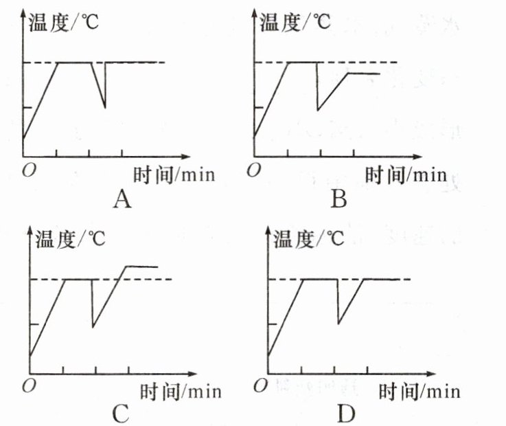 (5)星期天小明在家烧水煮饺子,当水烧开准备下饺子时,妈妈提醒他锅里的水有点少,于是小明又往锅里迅速加了一大碗凉水(水量比锅里少),用同样大的火直至将水再次烧开,下面能说明其整个烧水过程中温度随时间变化的图像是