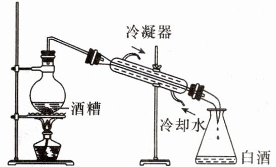 18. (2024·泸州改编)蒸馏法在酿酒过程中得到广泛应用,如图所示为蒸馏过程中的原理图,烧瓶内装有含酒精和水的酒糟,关于蒸馏的过程中涉及的物理知识,说法正确的是(