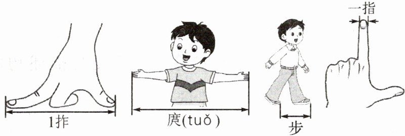 1. (2024·湖北)我国古代把女子一拃长称为“咫”,男子一拃长称作“尺”,如图。“咫尺之间”用来比喻相距很近,实际“咫”与“尺”的长度相差大约为(