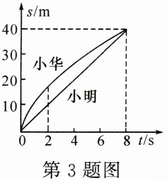 3. 课外活动时,小明和小华在操场上沿直跑道跑步,他们通过的路程与时间的关系如图所示,则下列说法正确的是(