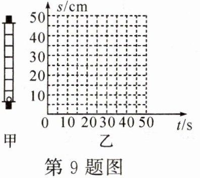 9. 如图甲所示,在“研究气泡的运动规律”实验中。