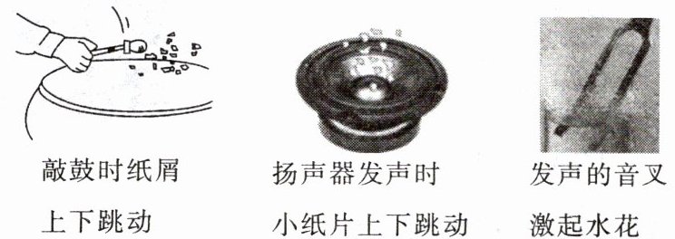 。(2)实验中通过纸屑、小纸片和水来放大鼓面、扬声器和音叉的振动,这种研究问题的方法叫作