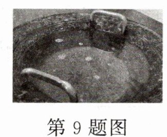 9. 北师大附属实验校本经典题 如图所示,是博物馆珍藏的古代青铜“鱼洗”,注入半盆水后,用双手搓把手,会发出嗡嗡声,盆内水花四溅。传说,众多“鱼洗”声能汇集成千军万马之势,曾吓退数十里外的敌军。这反映了我国古代高超的科学制器技术。下列分析正确的是 (