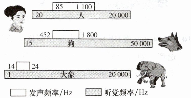 7. 如图所示是人和一些动物的发声和听觉的频率范围,下列说法正确的是(