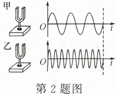 2. 如图是敲响两个不同音叉发出的声音的波形图,其中甲音叉的振动频率