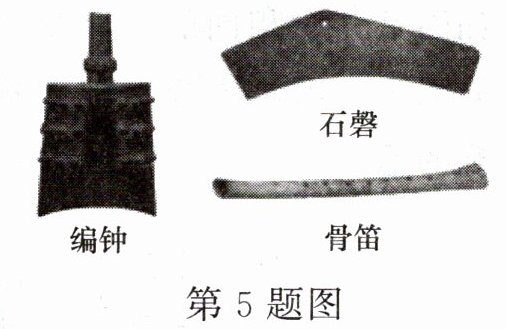 5. (2024·青岛)如图所示,编钟、石磬和骨笛均是我国出土的古代乐器,演奏时它们发出的声音音色不同,这主要是因为(