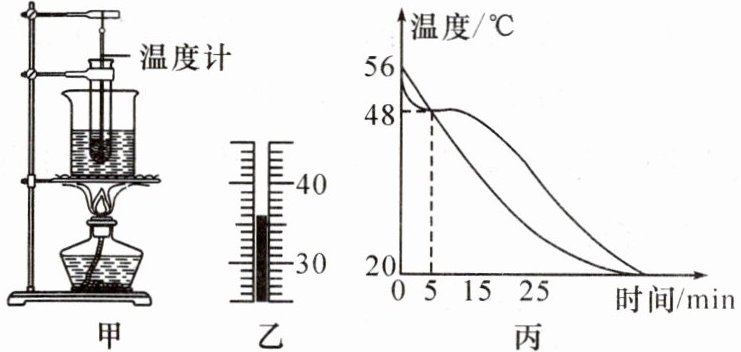 (1) 如图乙所示,温度计显示的是蜂蜡在某时刻的温度,它的示数是