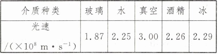 5. 小明想进一步探究光在固体、液体、气体中的传播速度的大小关系,通过网络查询到光在几种不同均匀介质中的传播速度如表所示: