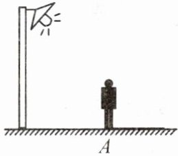 4. 小华从夜晚的路灯下走过时,在地面上观察到了自己的影子,如图所示。请在图中画出小华在路灯下 A 点形成影子的光路及此时影子的范围 AB。