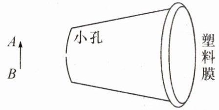 12. (2024·武威)如图所示是小强在纸杯上蒙上一层塑料膜做小孔成像实验的情景,请在图中作出烛焰(用 AB 表示)在塑料膜上成的像(用 A'B'表示)及光路图。