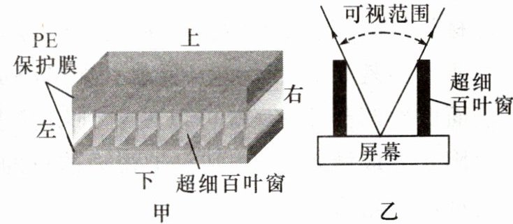10. 如图甲为手机防窥膜结构图,贴在手机屏幕上的效果如图乙,其他人从旁边望过去,只能看到一片漆黑,是由于光