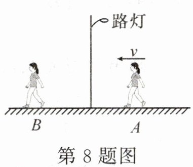 8. 小刘晚上下班回家经过一盏路灯,如图所示,当她从 A 点沿直线走向 B 点的过程中,她的影子长度的变化情况是(