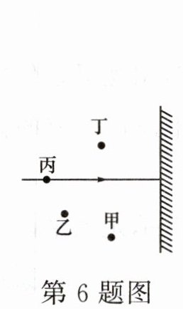 6. 如图,一束光垂直入射到平面镜上,反射光线经过的点是(