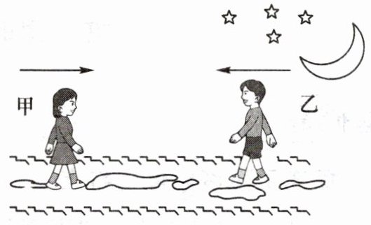 (填“镜面反射”或“漫反射”)。如图所示,人在月光下行走,为了不踩到地上的积水,甲同学迎着月光走,应走暗