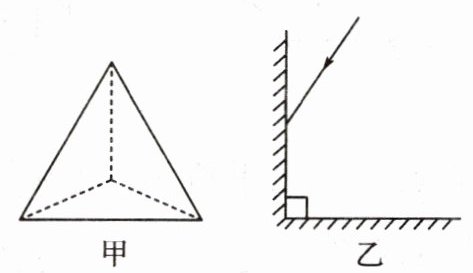 10. (2024·泸州)如图甲是随嫦娥六号一起发射的角反射器的示意图,其三个反射面相互垂直,其中两个反射面如图乙所示,一束光只在这两个反射面发生了反射,请在图乙中画出这束光反射的光路图(保留作图痕迹)。