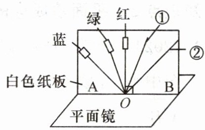8. 如图所示,小海同学在“探究光的反射定律”实验中,利用红、绿、蓝三种色光的激光笔进行实验,他将位于同一平面内的白色纸板立在平面镜上。下列说法中正确的是(