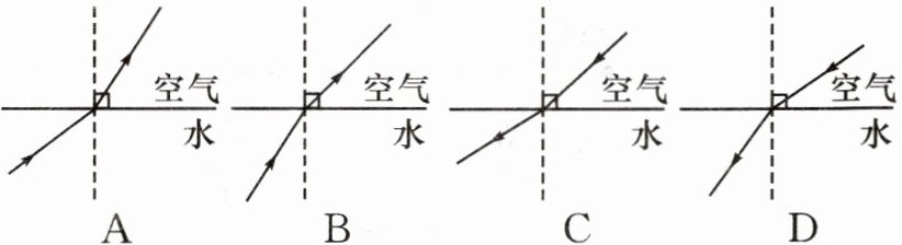 7. 如图所示的图像,能正确表示“潭清疑水浅”光路的是 (