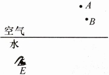 13. 如图,在平静的湖面上方有一盏路灯,潜水员在水下 E 处看到了路灯的像,图中 A、B 两点中