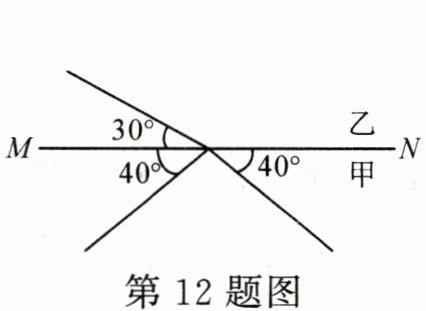 12. 如图所示,一束光从介质甲射向介质乙,两种介质中有一种是空气,另一种是玻璃,MN 是其分界面。则图中入射角为