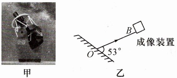 2. (2024·南充)2023年9月17日,我国墨子巡天望远镜正式启用,它是北半球巡天能力最强的光学时域望远镜,如图甲所示。一束星光入射到望远镜,经主镜反射后到达成像装置,如图乙所示,OB是反射光线,请画出其入射光线AO并标出入射角大小(保留作图痕迹)。