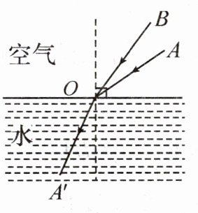 13. 如图所示,$OA'$是入射光线AO的折射光线,请在图中画出入射光线BO的反射光线和该入射光线在水中的折射光线的大致方向。