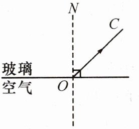 10. (2024·通辽)一束光从玻璃斜射入空气中时,在玻璃与空气的交界面上发生了反射和折射,反射光线OC如图所示,请在图中画出入射光线AO和折射光线OB的大致方向。