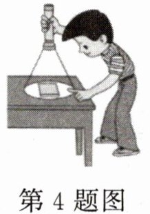 4. 晚上,在桌面上铺一张白纸,把一块小平面镜平放在白纸上,让手电筒的光正对着平面镜和白纸照射,如图所示,从侧面看去(