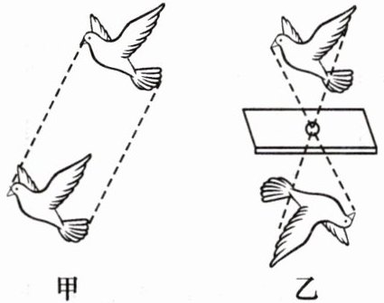 6. 沈括在《梦溪笔谈》中记述到“若莺飞空中,其影随莺而移”(如图甲),而在纸窗上开一个小孔使莺的影子呈现在室内纸屏上,却观察到“莺东则影西,莺西则影东”(如图乙),则下列说法不正确的是(