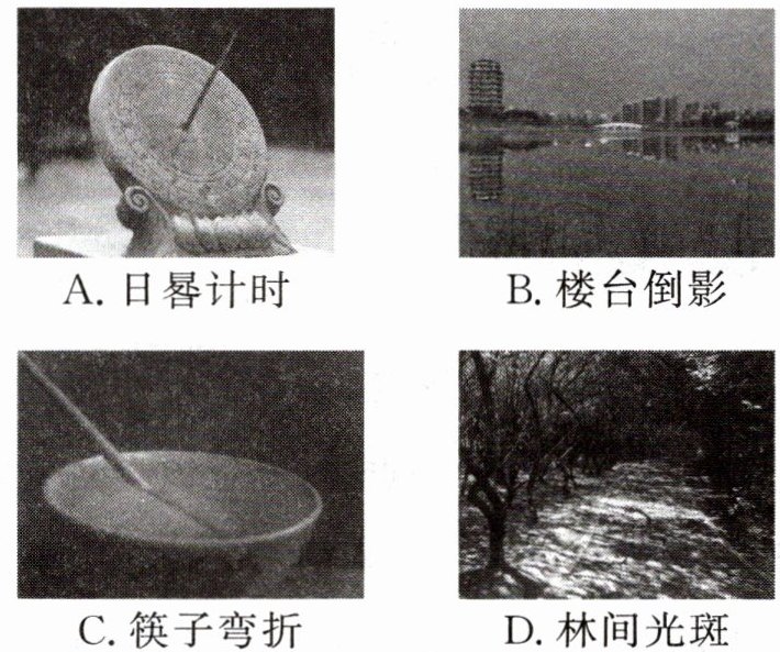 3.(2024·陕西)中国古诗词不仅文字优美、意境高远,还蕴含着丰富的科学知识。下列四幅图与诗句“掬水月在手,弄花香满衣”中所涉及的光现象相同的是(