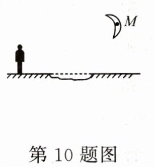 10.(2024·西安莲湖区期末)如图所示,M点代表月亮,请你在图中作出月亮在水中所成的像M',以及人眼看到水中月亮的光路图。