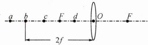 3. 小明在探究凸透镜成像规律时,保持凸透镜的位置不变,先后把蜡烛放在如图所示的 a、b、c、d 四点,并分别调整光屏的位置。请回答下列问题: