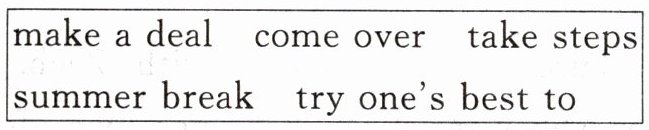 11. come over 12. made a deal 13. summer break 14. to take steps 15. tries her best to