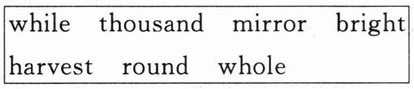 8. harvest 9. whole 10. while 11. round 12. mirror 13. thousands 14. bright