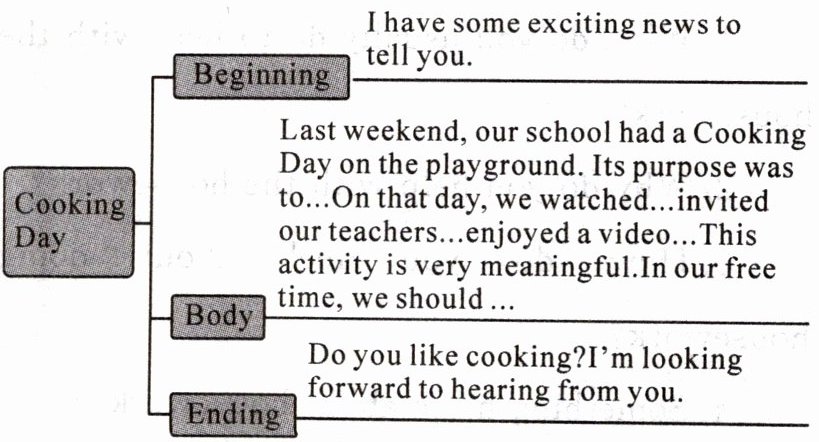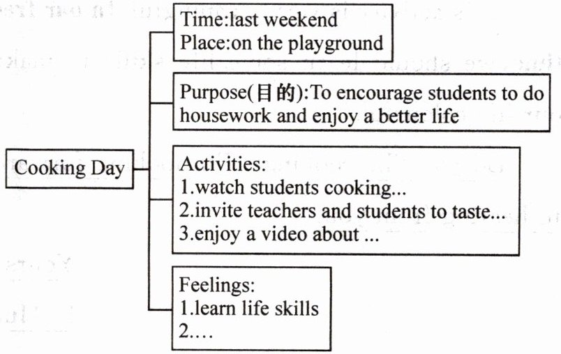1.定主题:介绍学校上周末举办的烹饪节活动及感受