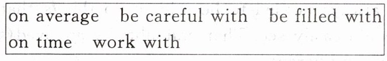 16. was filled with. 17. work with 18. on time 19. on average 20. be careful with