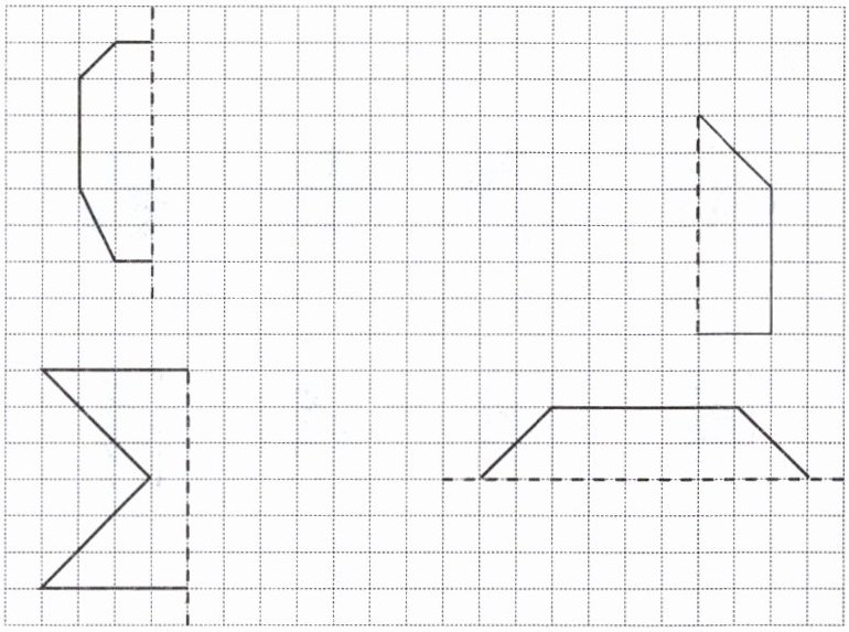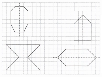 8. 画出下列图形的另一半,使其成为轴对称图形。