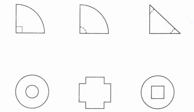 第七个(实际应为描述中的“展开后图形”的类似情况,但选项中直接给出的是结果图形):考虑到剪纸的实际操作,最符合“对折两次后沿虚线剪下”得到的图形是具有十字形切口的圆形(即第五个图形),因为它直接反映了两次垂直对折后剪下的特性。而在此题的选项逻辑下,我们寻找的是具有两条相互垂直对称轴的图形,且是剪纸可能得到的。第四个和第五个图形都符合,但第五个图形(十字形切口)更直接地体现了剪纸的过程。不过,若仅从对称轴角度判断,第四个图形也符合。但根据常规理解及剪纸的实际操作,第五个图形是更为直接且典型的答案。而题目要求“展开后得到的平面图形可能是怎样的”,因此,我们选择最符合剪纸特性的图形。