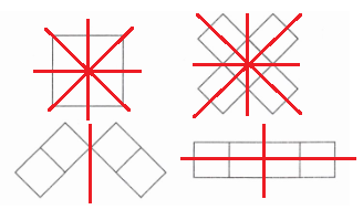第五个图形:有两条相互垂直的对称轴(十字形),符合。