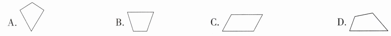 (3)小红描述一个图形:它有 4 条边,只有 1 组平行线,只有 1 条对称轴。下列第(