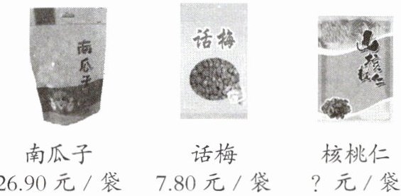 (3)核桃仁的单价是话梅的3倍,核桃仁的单价是多少钱?妈妈买了4袋核桃仁,需要花多少钱?