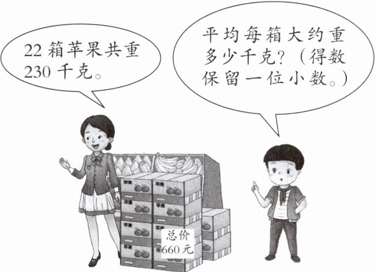 解析:本题考查除法运算及取近似值,用苹果的总重量除以箱数,可得到平均每箱的重量,再根据题目要求保留一位小数。