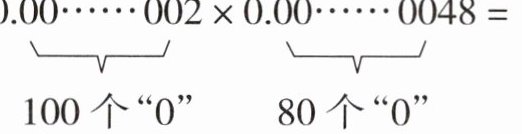 $\underbrace{0.00……00}_{100个"0"}2×\underbrace{0.00……00}_{80个"0"}48=\underbrace{0.00……00}_{181个"0"}96$。