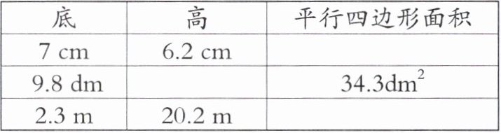 根据平行四边形面积公式$S = a× h$,可得$S=7×6.2 = 43.4(cm^{2})$。
