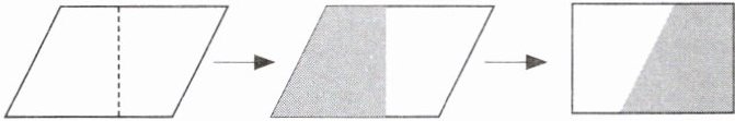 把一个平行四边形沿着它的一条高剪开,通过平移拼成一个长方形,长方形的长相当于原平行四边形的底,宽相当于原平行四边形的高,它的面积和原平行四边形的面积相等。