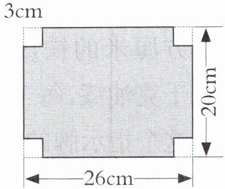 原始硬纸板是一个长方形,长为$26 \text{cm}$,宽为$20 \text{cm}$。